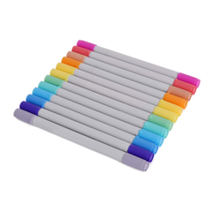 A set of 12 quality ink pens feature double-edged tips for superior versatility and artistic range. Execute clean, clear, meticulous lines with a super fine 0.5-1mm pen ideal for the office, school, and intricate sketching. On the opposite side, each marker boasts a classic 2-4mm angled chisel to help you fill in the lines with exceptional control.